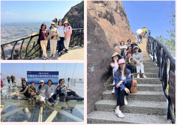 山勢陡峭而險峻,山上峭壁錯列,怪石嶙峋,巨石斜聳突兀似牛角,順南或北的險徑攀援而上,時(shí)而令人頭暈目眩,時(shí)而令人心驚膽顫。娘子軍們氣定神閑、鼓舞加油,順利通過(guò)“玻璃棧道”、“玻璃大橋”等懸崖景點(diǎn),完成石牛寨一小步,征服內心一大步。充分展現出長(cháng)沙市政女職工激情拼搏、團結協(xié)作的精神風(fēng)貌。